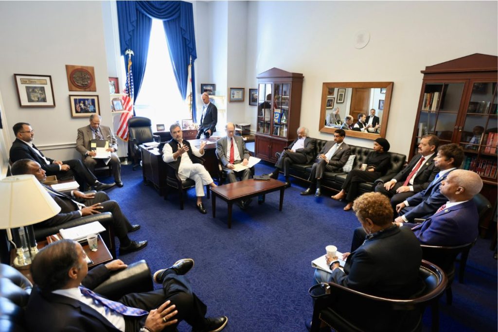 कांग्रेस नेता राहुल गांधी अपने अमेरिका दौरे के आखिरी दिन मंगलवार देर रात वॉशिंगटन डीसी में अमेरिकी कांग्रेस के प्रतिनिधिमंडल से मिले। रेबर्न हाउस में हुई इस मुलाकात में इल्हान उमर (Ilhan Omar) भी मौजूद थीं।